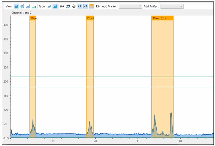Figure 2: sEMG signals of a participant whose DL volume was determined as 30 mL |